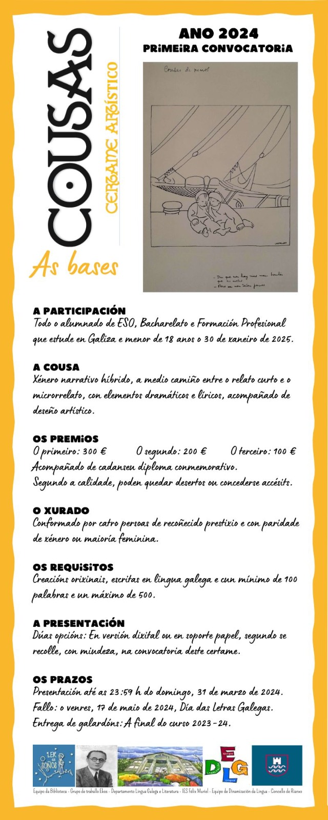 Organizado polo IES Félix Muriel e destinado a todas as persoas menores de 19 anos que estean cursando ESO, Bacharelato e Formación profesional no curso escolar 2023-24. - Certame Cousas do IES Félix Muriel - Concello de Rianxo
