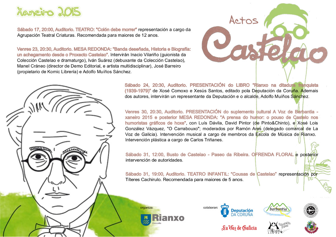 Programación dos Actos Castelao 2015 organizados pola Área de Educación, Cultura e Normalización Lingüística do Concello de Rianxo coa colaboración de diferentes entidades.