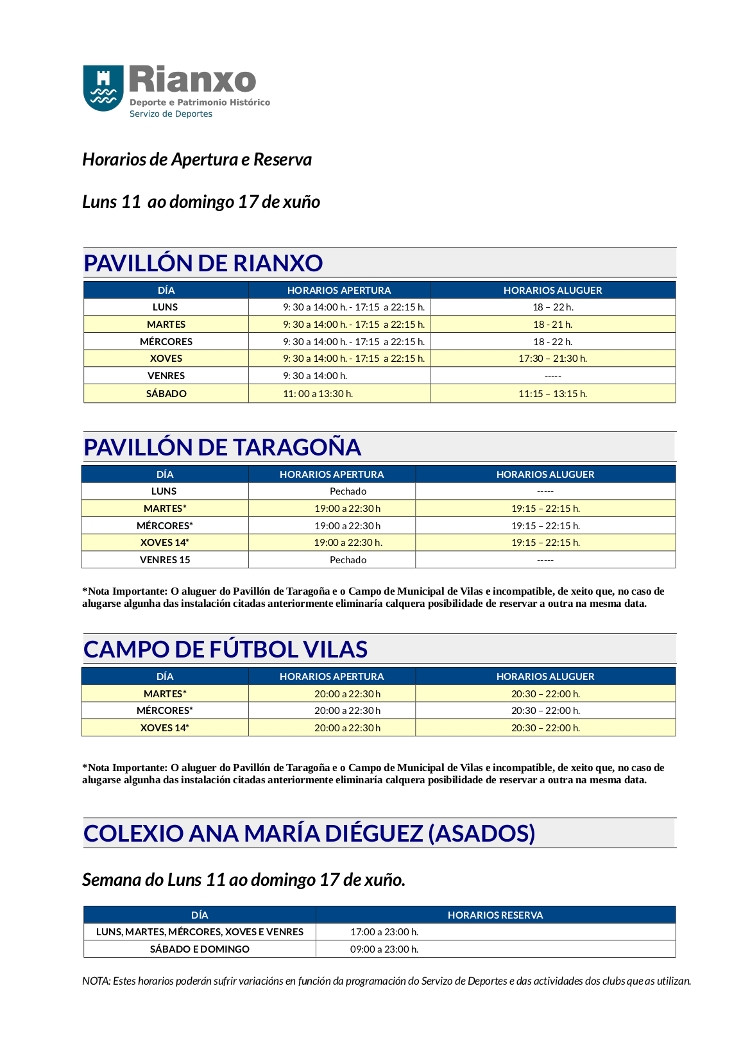 - Reserva de pavillóns e campos de fútbol - Concello de Rianxo