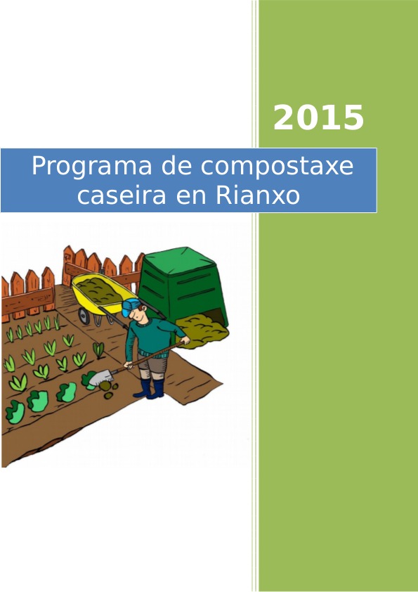 O concello de Rianxo, xunto coa Deputación da Coruña desenvolveu unha campaña de compostaxe caseira no ano 2013, vista a gran aceptación que tivo esta campaña, reeditase no 2015. Para os/as interesados/as en participar, ábrese un prazo de inscrición dende o 9 ao 31 de outubro.