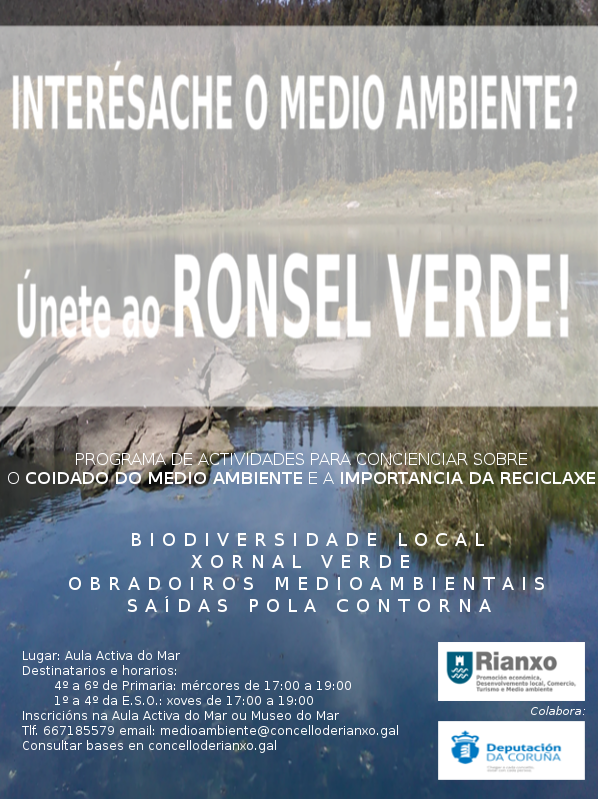 Realizaremos saídas para recoñecer especies e obradoiros de reutilización e reciclaxe, entre outras. Únete ao Ronsel Verde!